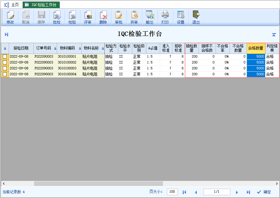 第6步:检验记录项登记完成后,物料会根据不合格数与准入标准,自动判断检验结果;