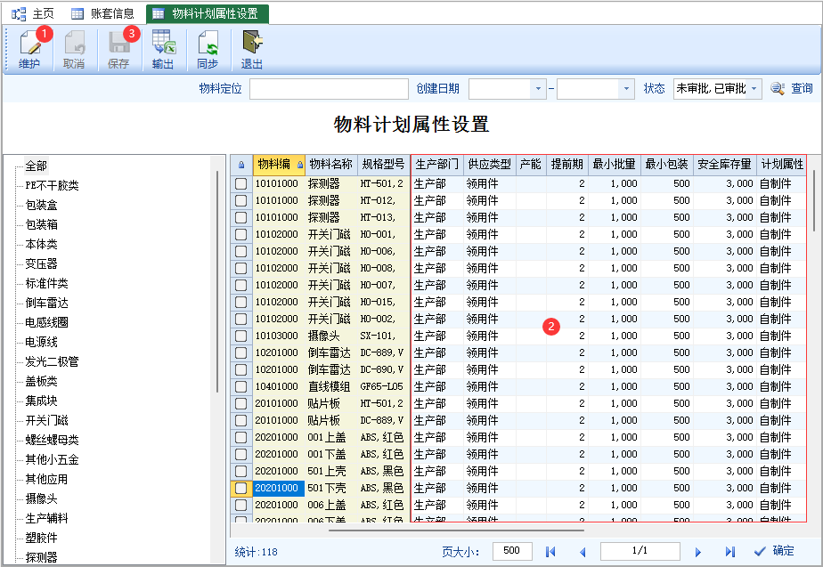 - 此处保存好的计划属性,不会回写第三方ERP物料档案;