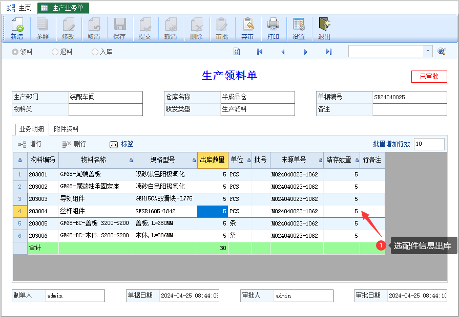 2)基于生产流转的配件清单信息,即直接在产品的标准BOM用料中体现,后面在生成产品用料清单中体现配件信息。